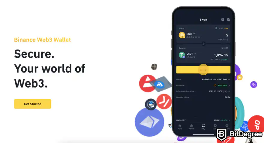 一方、Binance Web3 WalletはMPCを搭載した自己管理型ウォレットで、Binance取引所(より正確にはBinanceモバイルアプリ)にも組み込まれています。Binance Walletとは異なり、Web3 Walletは様々なdAppsとの接続に重点を置いています。ただし、ウォレット内での交換や収益獲得機能も備えています。